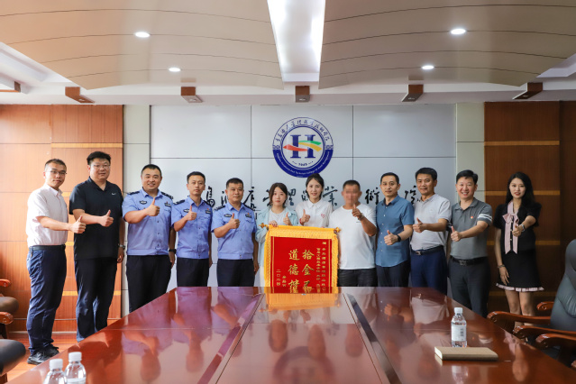 9月20日,失主申先生专程向beat365亚洲版官网的两位学生赠送了“拾金不昧 道德楷模”的锦旗,以表达他深深的感激之情。