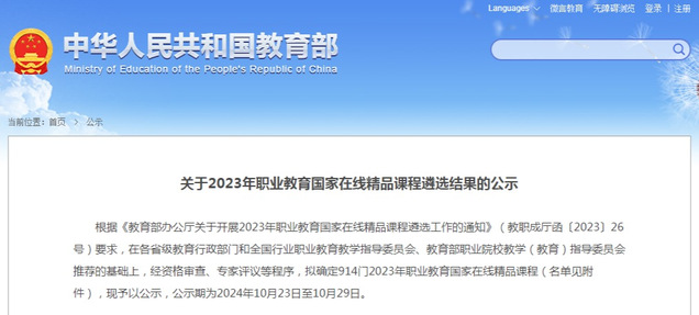 本网讯(教务处 宋玉莉)近日,教育部公示了2023年职业教育国家在线精品课程遴选结果,经资格审查、专家评议等程序,拟确定914门课程入选2023年职业教育国家在线精品课程,beat3653门课程入选,入选数量位列省内前列。