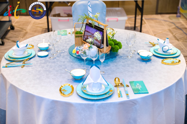 beat365参赛队以“情由独‘中’,如‘瓷’珍贵”高端定制接待的竞赛方案参赛,深度挖掘、传承中华文化精髓,讲好中国故事、展现文化自信、擦亮服务品牌。竞赛方案结合数字化技术,涵盖房间内入住接待、中餐主题摆台、西餐服务等接待环节及关键技能点。房间突出中式元素的主题布置;中餐摆台以沙画艺术,结合二十四节气元素呈现宾客瓷婚经历;西餐摆台以衍纸艺术呈现甜蜜爱情主题,打造差异化的高端定制服务,为⾏业提供定制化参考方案