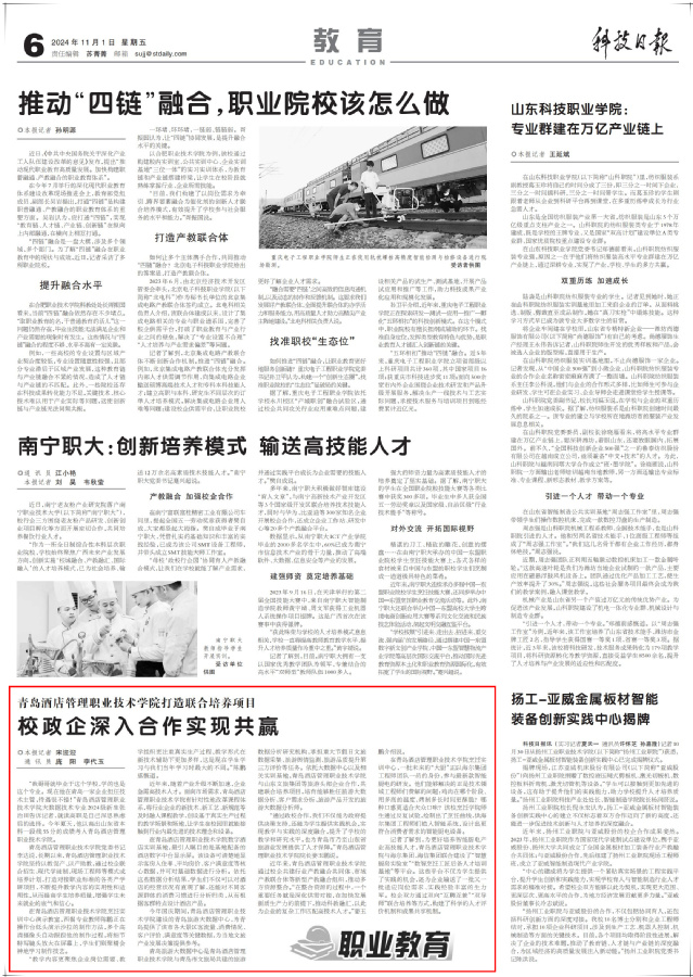 近年来,beat365亚洲版官网通过校企共建行业产教融合共同体、市域产教联合体等新型产教融合组织,推动多方资源整合。“在整合资源的过程中,一个重要任务就是深化供需对接,在加快发展新质生产力的前提下,推动科教融汇,以此为企业的复杂工作匹配高技术人才。”姜玉鹏介绍说。
