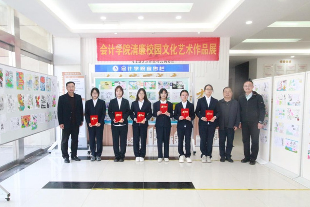 本网讯(会计学院 李一田)为进一步加强校园廉洁文化建设,培育增强大学生清风正气、诚实守信的意识。近日,会计学院举办清廉校园文化艺术作品展。学校纪委书记邱心显参加活动。