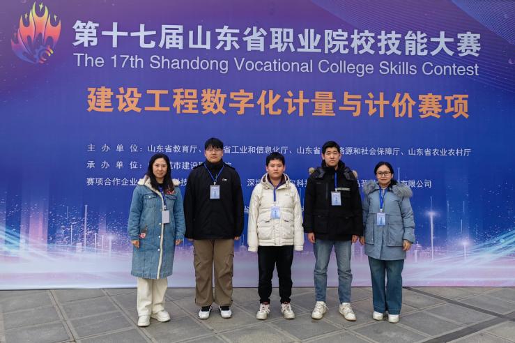 本网讯(酒店工程学院 葛玉洁)12月11日-13日,在第十七届山东省职业院校技能大赛高职组“建筑工程数字化计量与计价”赛项中,beat365由酒店工程学院葛玉洁、杨娟娟老师指导,工程造价专业张振钰、张晓开、高旭康三名同学组成的参赛队伍荣获三等奖。