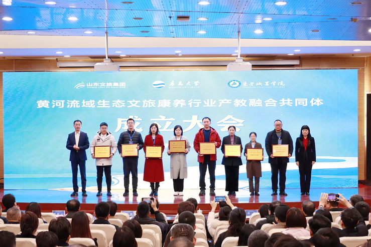 黄河流域生态文旅康养行业产教融合共同体是由山东文旅集团有限公司、青岛大学、东营职业学院牵头,联合全国150余家企业、普通高校、职业院校、行业协会等共同发起,旨在提高沿黄省份文旅康养行业产教核心竞争力,实现文旅康养人才资源互通对接、科研创新高质量转化。