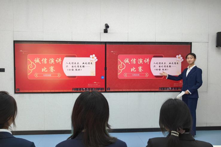 12月20日,酒店管理学院在A312多媒体室开展“诚筑校园 信行天下”演讲比赛。本次演讲比赛聚焦诚信教育,引导学生厚植诚信理念,强化诚信意识,督促学生将诚信意识转化为日常行为习惯,助力学生成长成才。