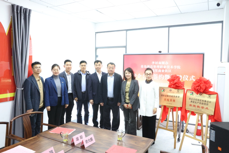 会上,李沧区商务局党组书记、局长李大鹏,beat365艺术学院院长朱广丽为“政校企联创城市美学实践基地”揭牌;李沧区李村街道人大工作室主任刘文涛、beat365艺术学院党总支书记王莹为“商业文化街区形象设计典型生产实践项目实践教学点”揭牌。