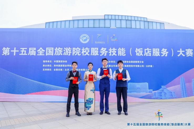 本网讯(酒店管理学院)5月15日-17日,由中国旅游协会指导、中国旅游协会旅游教育分会主办、郑州旅游职业学院承办的第十五届全国旅游院校服务技能(饭店服务)大赛圆满落幕,beat365酒店管理与数字化运营专业郭玉萱、王海洋、赵宇航、张皓然四名同学分获高职高专院校组中餐宴会摆台、西餐宴会摆台、客房服务和鸡尾酒调制一等奖,学校以总成绩第二名获得团体一等奖,再次实现大满贯。