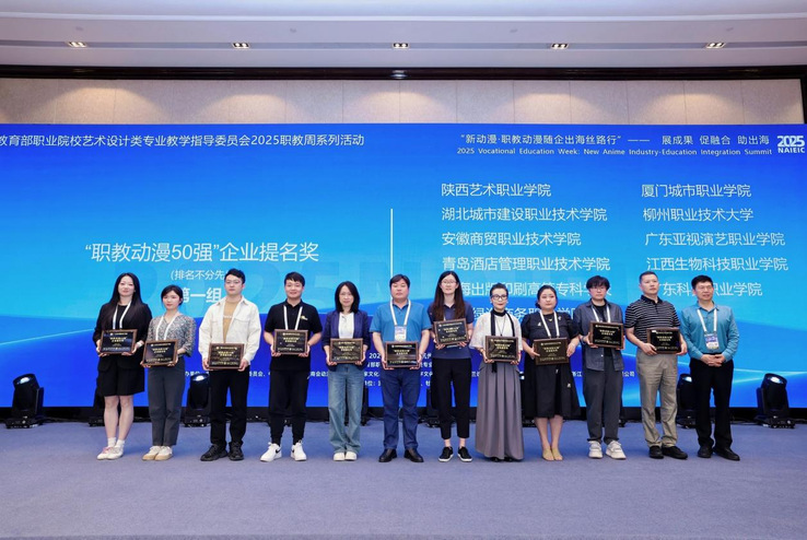 “职教动漫50强”企业提名奖旨在表彰在动漫职业教育领域产教融合成果突出、人才培养成效显著的院校。近年来,学校艺术学院聚焦数字化内容与设计方向,围绕“文化传播、产教融合、成果转化”三大目标推进数字设计产业项目建设:通过打造传统文化人物故事IP、开展数字媒体艺术创作、开发数字课程资源与教材,构建了覆盖课程、实训、就业的全链条人才培养体系。