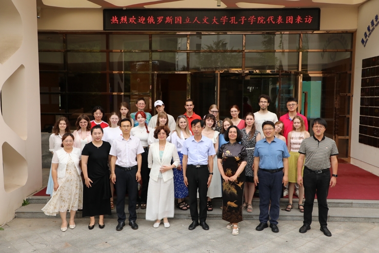 本网讯(工商管理学院)7月7日,俄罗斯国立人文大学孔子学院中方院长张瑞、对外经济贸易大学青岛研究院副院长曹会忠,以及来自俄罗斯国立人文大学孔子学院20名师生来校访问交流。学校党委副书记韩西清接待来访客人并参加座谈。