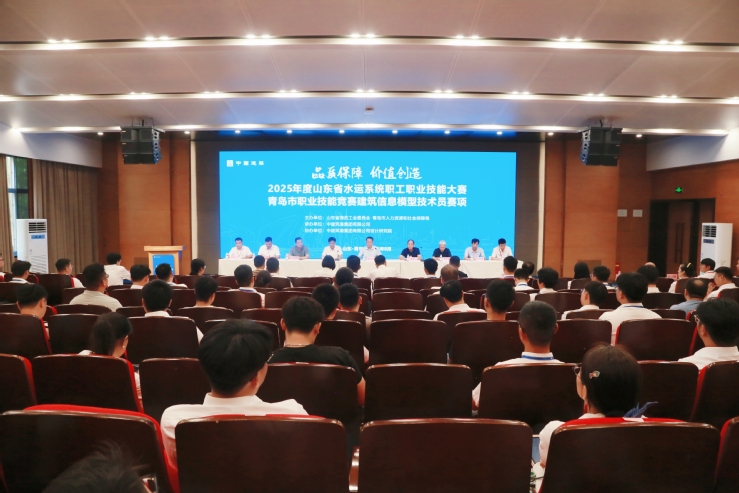 本网讯(酒店工程学院)8月19日,2025年度山东省水运系统职工职业技能大赛水上工程建筑信息模型(BIM)技术员赛项与青岛市职业技能竞赛建筑信息模型(BIM)技术员赛项在beat365举行。青岛市人力资源和社会保障局二级巡视员黄同华,山东省海员工会主席吴玉川,中建港航局党委副书记、董事、工会主席郭导,青岛市人力资源和社会保障局职业能力建设处处长杨志强,学校党委副书记韩西清等参加启动仪式。