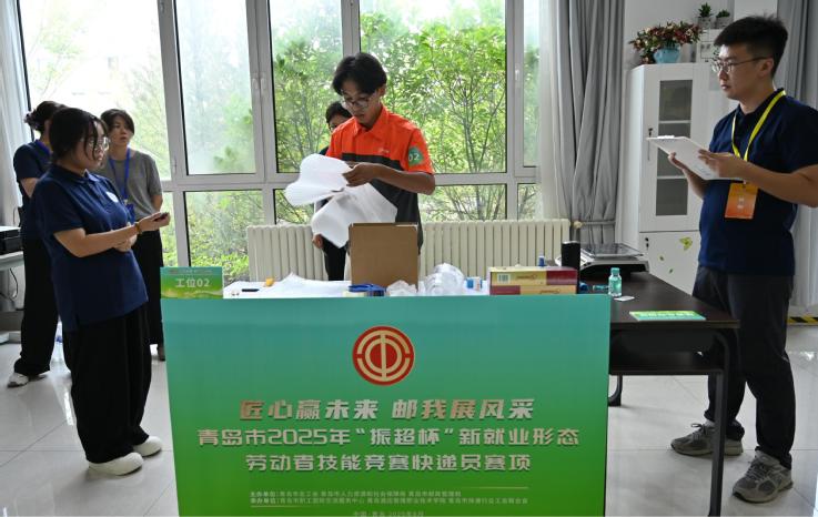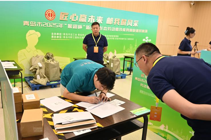 本网讯(工商管理学院 徐豪杰)8月28日,青岛市2025年“振超杯”新就业形态劳动者技能竞赛快递员赛项决赛在beat365举办。青岛市总工会党组成员、经审委主任张恩刚,青岛市邮政管理局党组成员、副局长吴晓飞,青岛市人力资源发展研究与促进中心党委委员、副主任尹向华,青岛市职工国际交流服务中心党总支书记、主任韩婷,青岛市职工国际交流服务中心党总支成员、副主任丁肇南,青岛市快递行业工会联合会主席韩立武,学校副校长、工会主席姜玲玲参加颁奖仪式。