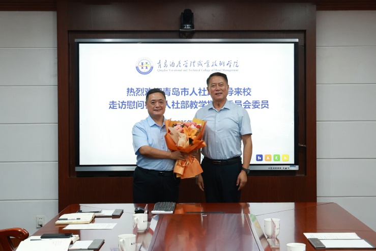刁洪斌对黄同华一行表示欢迎,对青岛市人社局的关心与支持表示感谢,并介绍了学校在现代服务业方面的办学特色,尤其是在康养生活服务领域职业技能大赛、技能型人才培养、社会服务等方面的经验做法。他表示,学校扎根青岛,主动对接青岛人才发展战略,积极服务青岛现代服务业发展需求。作为教指委委员,将积极发挥桥梁纽带作用,主动开展高技能人才培养和职业培训改革实践,为青岛乃至全国输送更多“留得住、用得上、干得好”的技能人才。