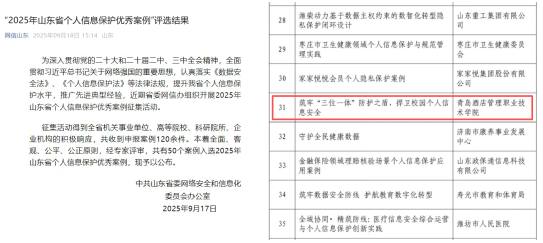 本次案例征集活动面向全省机关事业单位、高等院校、科研院所、企业机构,旨在深入贯彻党的二十大和二十届二中、三中全会精神,全面贯彻习近平总书记关于网络强国的重要思想,认真落实《数据安全法》《个人信息保护法》等法律法规,提升个人信息保护水平,推广先进典型经验。经专家评审,学校提交的案例从全省120余件参评案例中脱颖而出,成为全省高职院校唯一入选案例。
