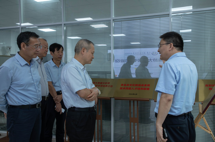 调研组一行围绕学校师资队伍建设、产教融合、实训基地建设等方面展开实地调研,先后考察了海斯曼数字酒店实训中心、青岛旅游大数据中心、烹饪学院实训基地等教学实训场所,详细了解学校在酒店管理与数字化运营、旅游管理、烹饪工艺与营养等专业领域取得的建设成效。